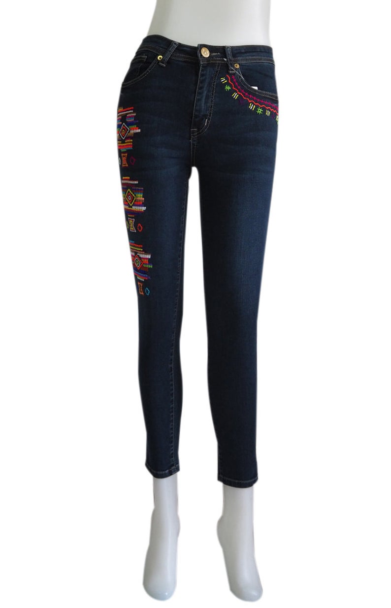 hand embroidered high waist stretchy jean